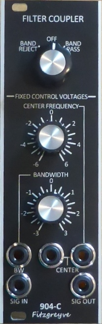 This module must be used with a standard Behringer 904A low-pass filter and a 904B high-pass filter, and gives band-reject and band-pass modes.